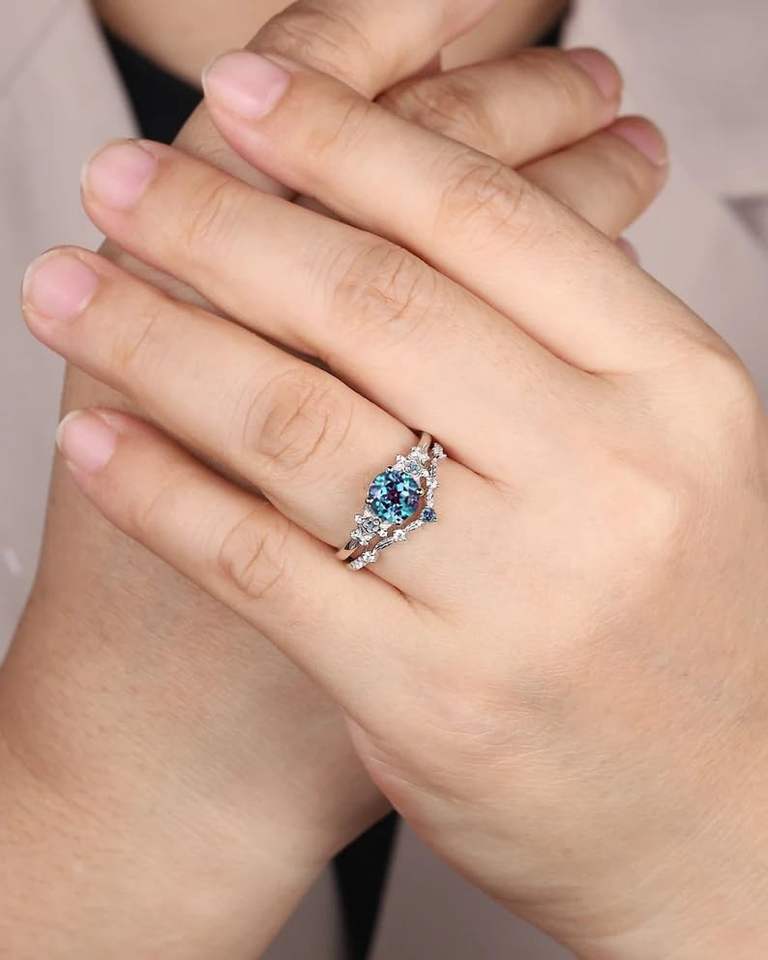 Nom du produit:Bague de fiançailles Alexandrite et Moissanite