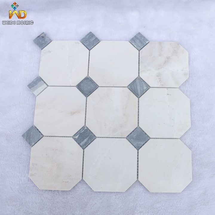 Motif de carreaux de mosaïque de marbre de sables de platine carreaux de mosaïque de marbre d'octogone pour des applications de murs et de planchers de salle de bains