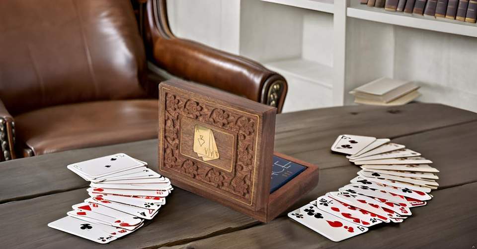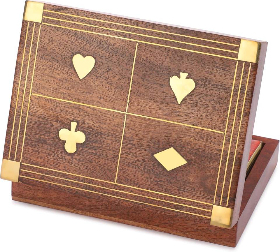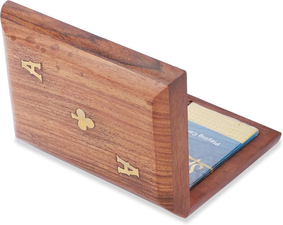 Boîte en bois pour cartes à jouer | Boîte à cartes en bois | Organisateur de cartes en bois artisanal | Jeux en bois indiens B2B | Jeux en bois pour adultes |