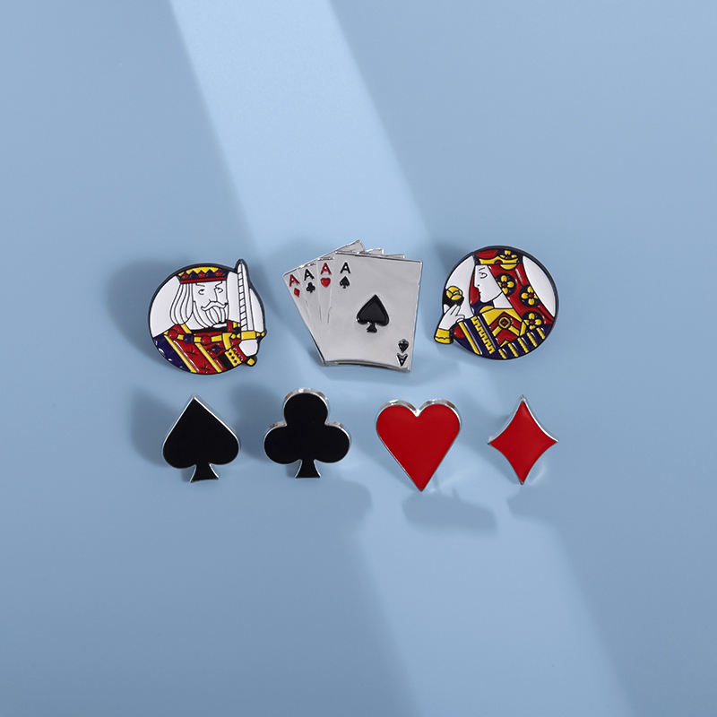 Cartes à jouer épingles en émail personnalisé Poker King Queen Spade coeur Club broches revers Badges Punk bijoux cadeau pour enfants amis
