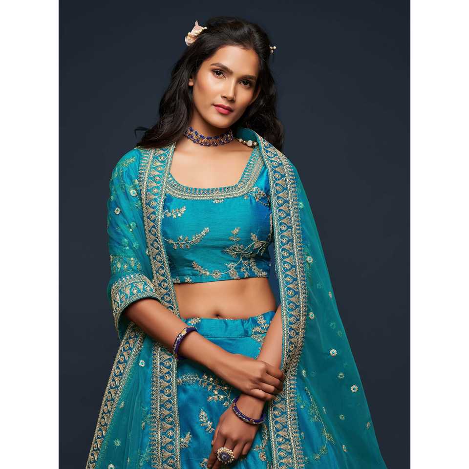 Agréable fil bleu sarcelle broderie Art soie mariage Lehenga Choli