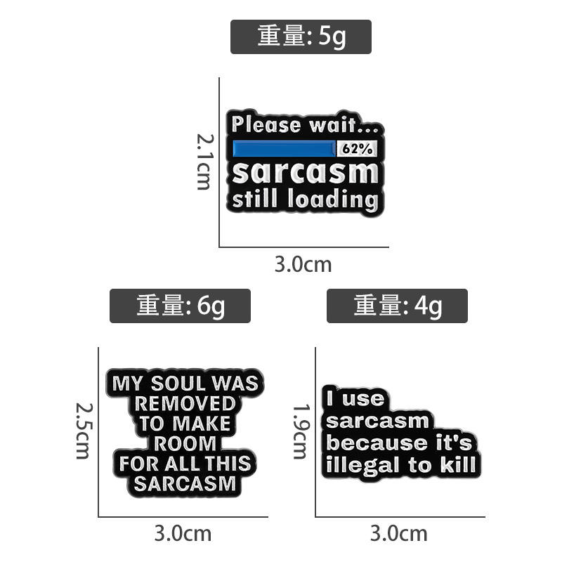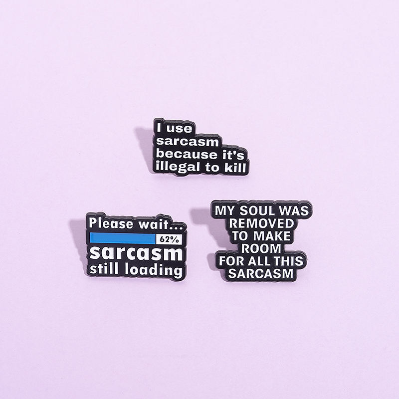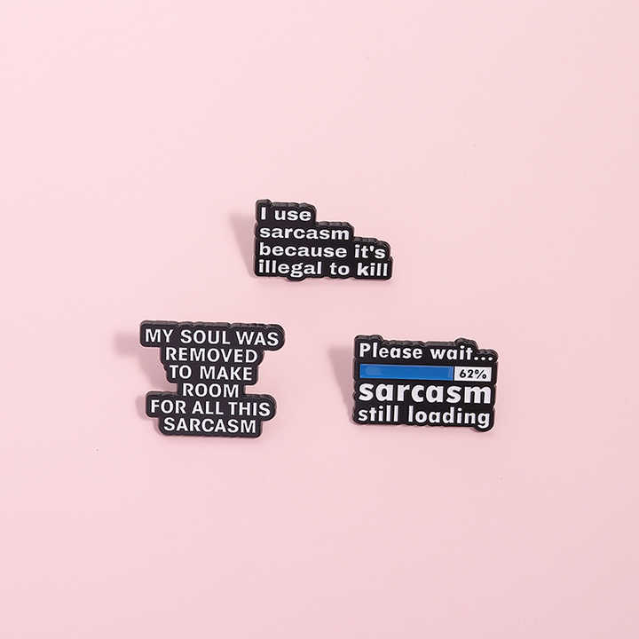 Veuillez attendre, le sarcasme est toujours en cours de chargement, épingles en émail, je utilise le sarcasme car il est illégal de tuer, broche, citation amusante, badge de revers, bijoux
