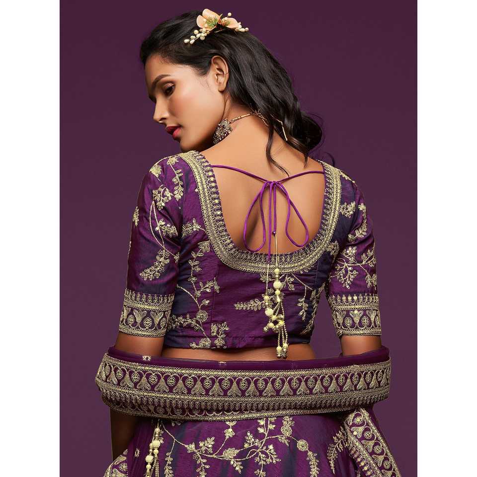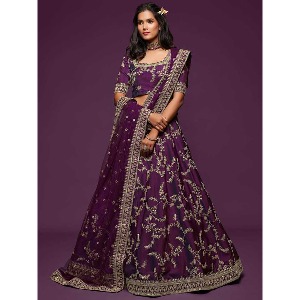 Agréable fil violet broderie Art soie mariage Lehenga Choli