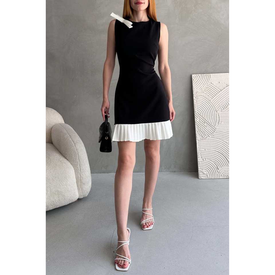 Robe mini plissée à col rond, moulante, bicolore, taille naturelle, en tissu tissé, pour un usage quotidien décontracté