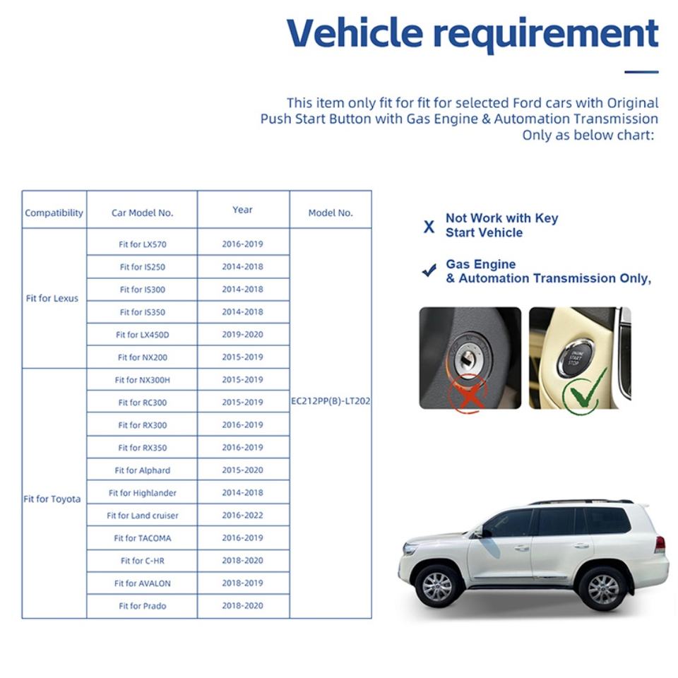 Démarreur à distance Plug & Play compatible avec les voitures Toyota Avalon 2016-2019 à moteur essence avec bouton de démarrage à pression d'origine et transmission automatique