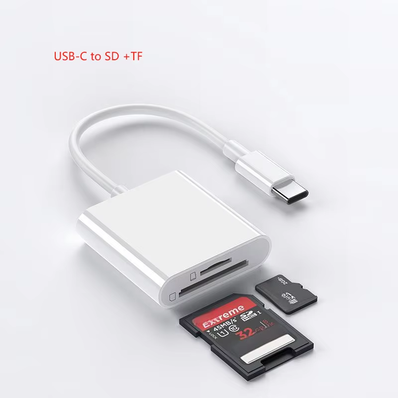Adaptateur Lecteur de Carte Mémoire SD PD TF OTG 2/3 en 1, Double Connecteur Plug and Play pour iPhone, iPad, Caméra de Chasse et Téléphone Mobile Android