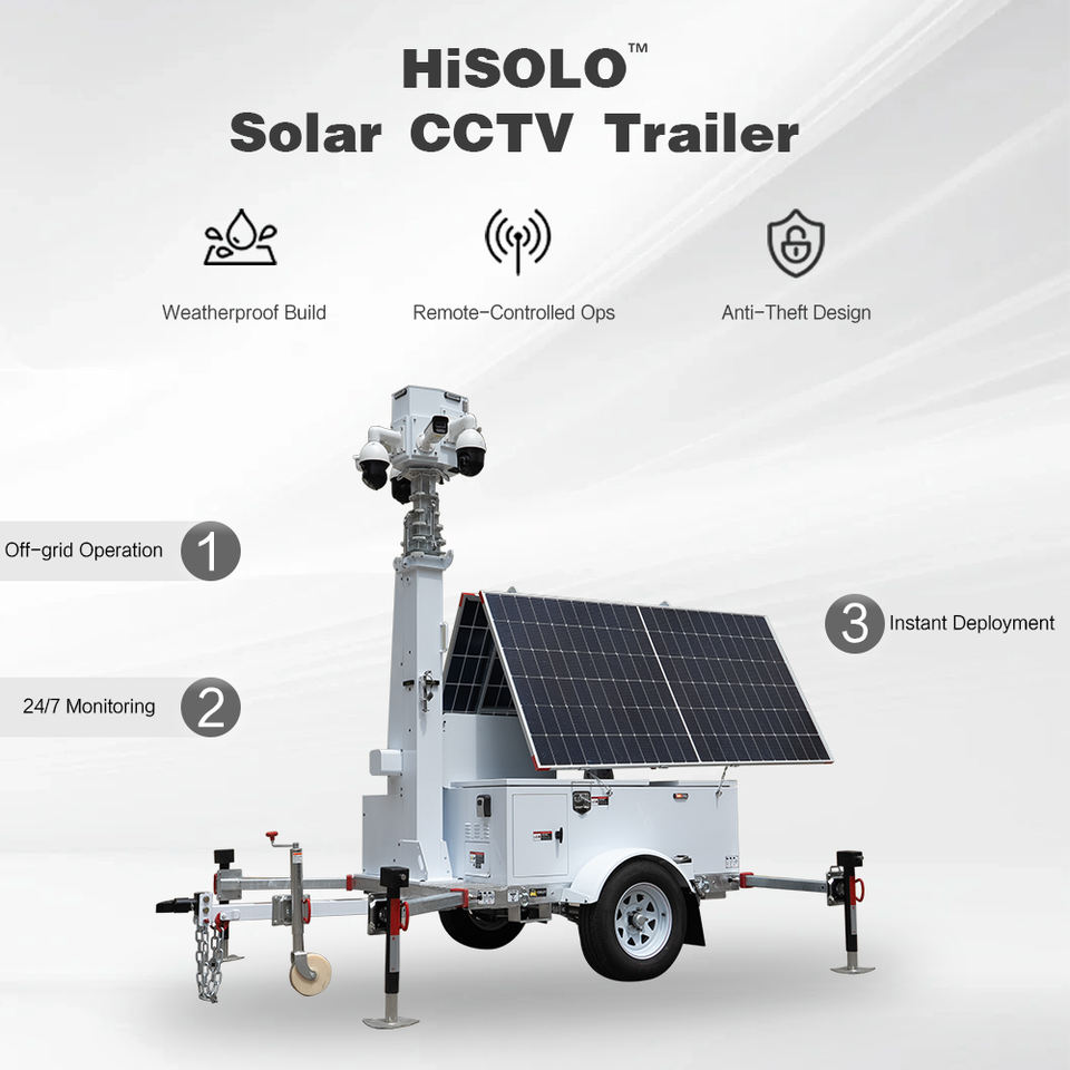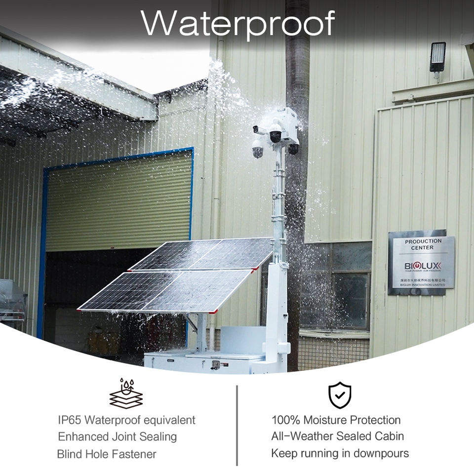 Tour de surveillance solaire portable prêt à l'emploi, idéale pour la location d'événements en plein air et de chantiers