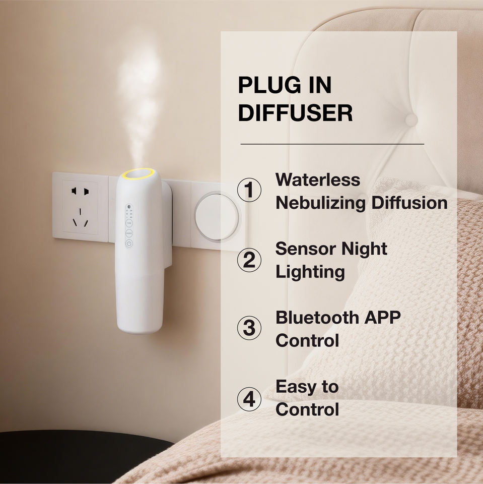 Diffuseur d'huiles essentielles sans eau à brancher sur prise murale avec lumière LED, contrôlé par application, écologique, diffuseur électrique pour parfumer la maison