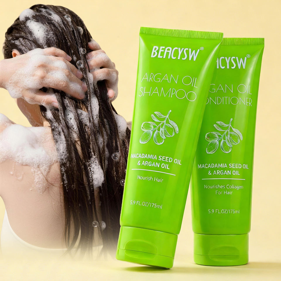 Ensemble Shampooing et Après-Shampooing Hydratant pour Cheveux Déshydratés et Secs avec Huile d'Argan et Huile de Graine de Macadamia, 1 Kit (2 Produits)