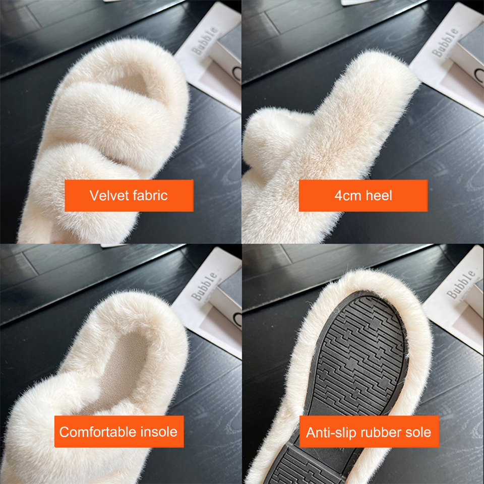 Pantoufles Grande Taille Antidérapantes Silencieuses Rehaussantes Douillettes pour Femme, à Plateforme en Fourrure, Bout Ouvert, pour Intérieur et Extérieur