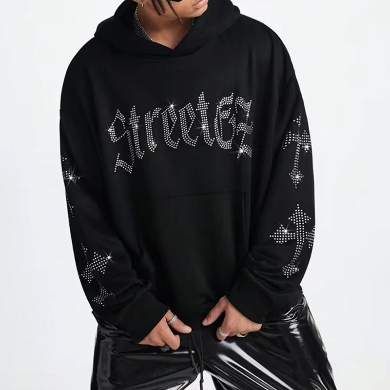 Sweats à capuche en strass respirants pour hommes de grande taille Derniers designs de basiques Sweats à capuche en strass pour hommes à vendre