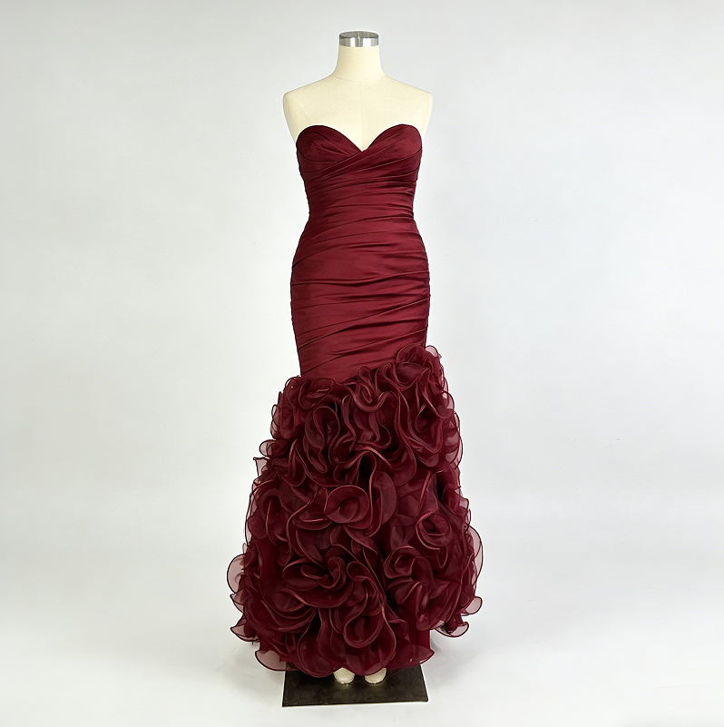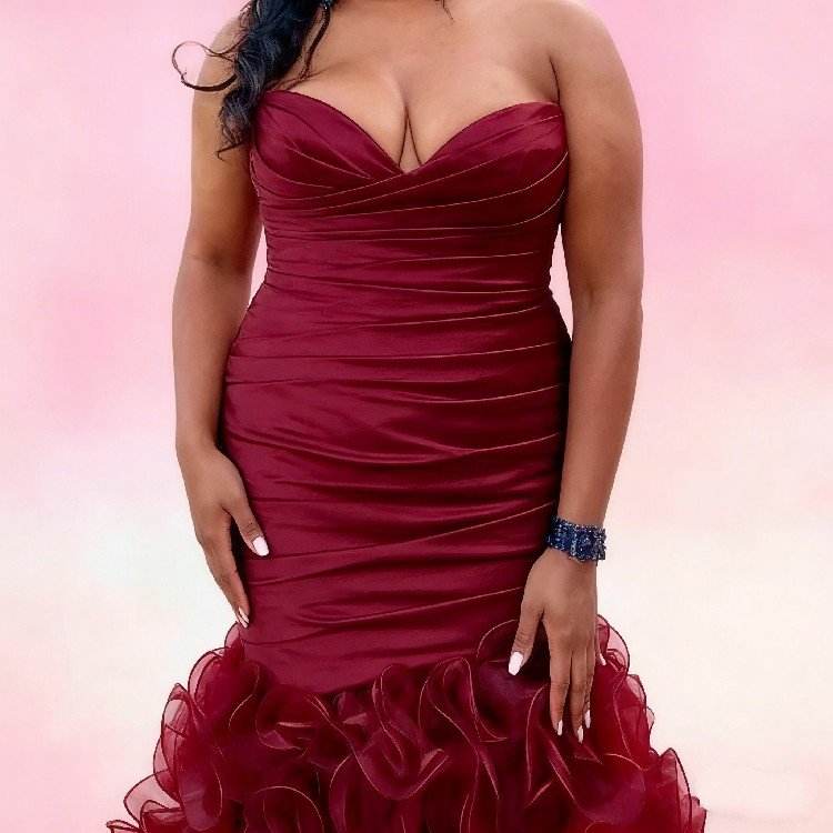 Plus Size Burgundy Elastic Satin Mermaid Bridesmaid Dresses Sweetheart Zipper Back Tiered Ruffle Party Maid of Honor Dress