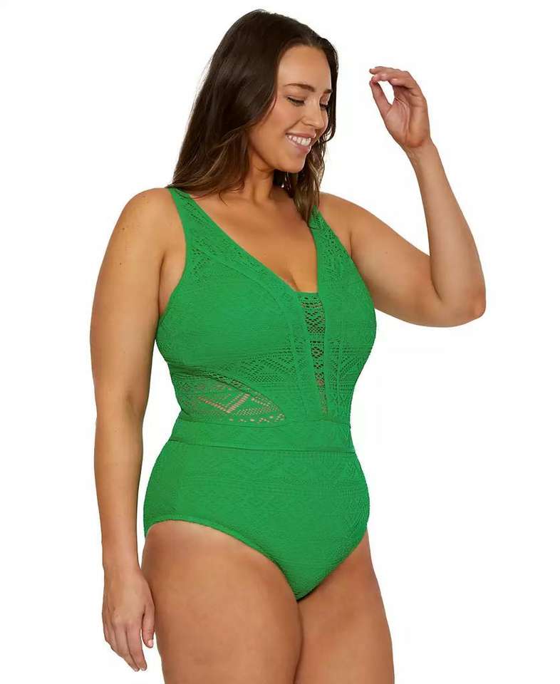 Maillot de bain une pièce grande taille effet ventre plat avec jeu de couleurs | Becca ETC