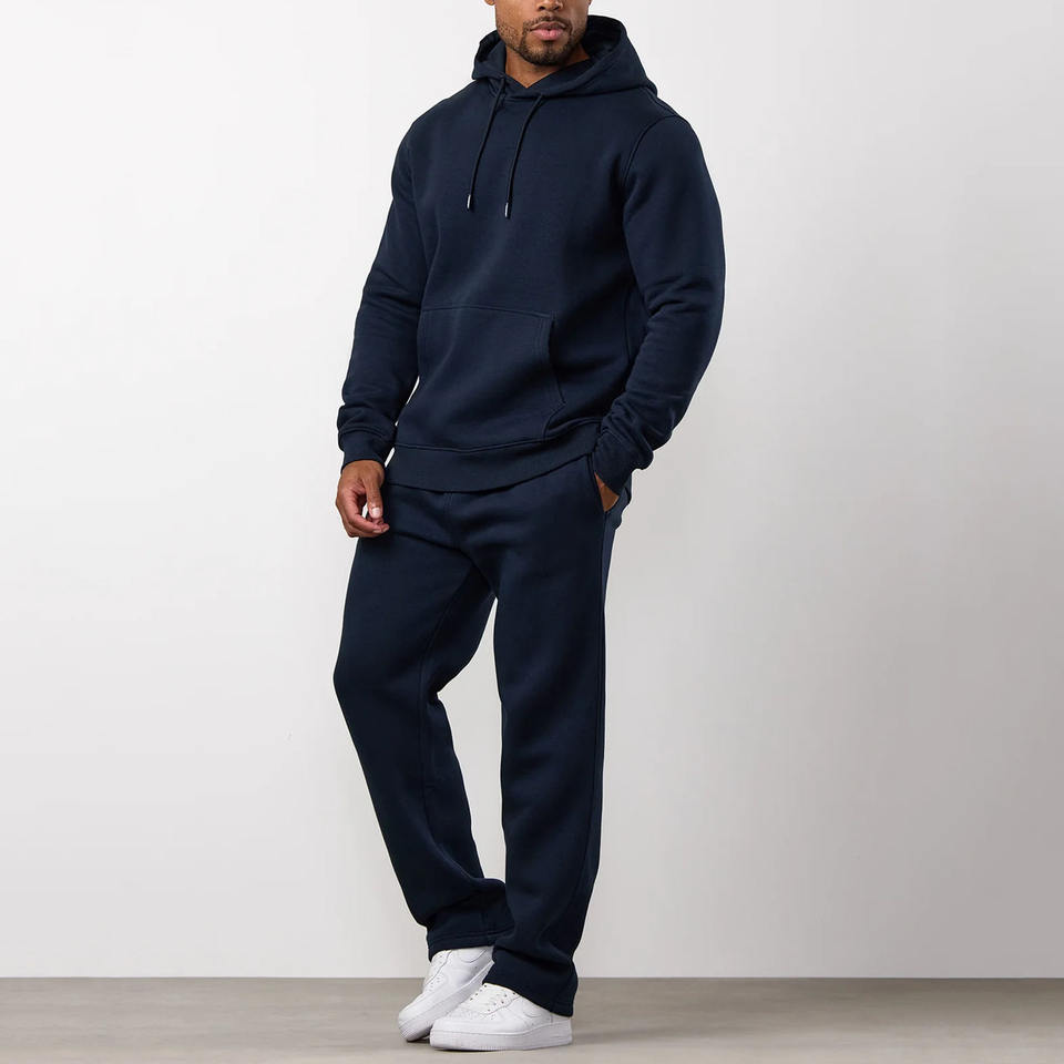 Survêtement pour homme en molleton de coton, sweat-shirt à capuche et jogging à jambe droite, taille plus, logo personnalisé, bleu marine