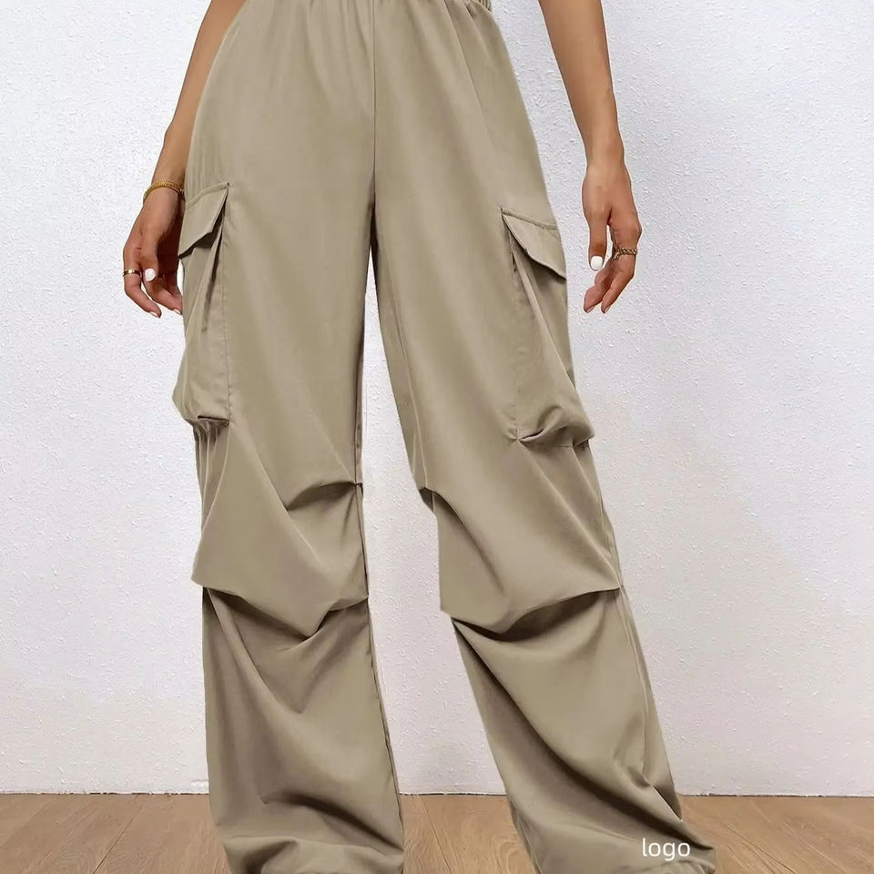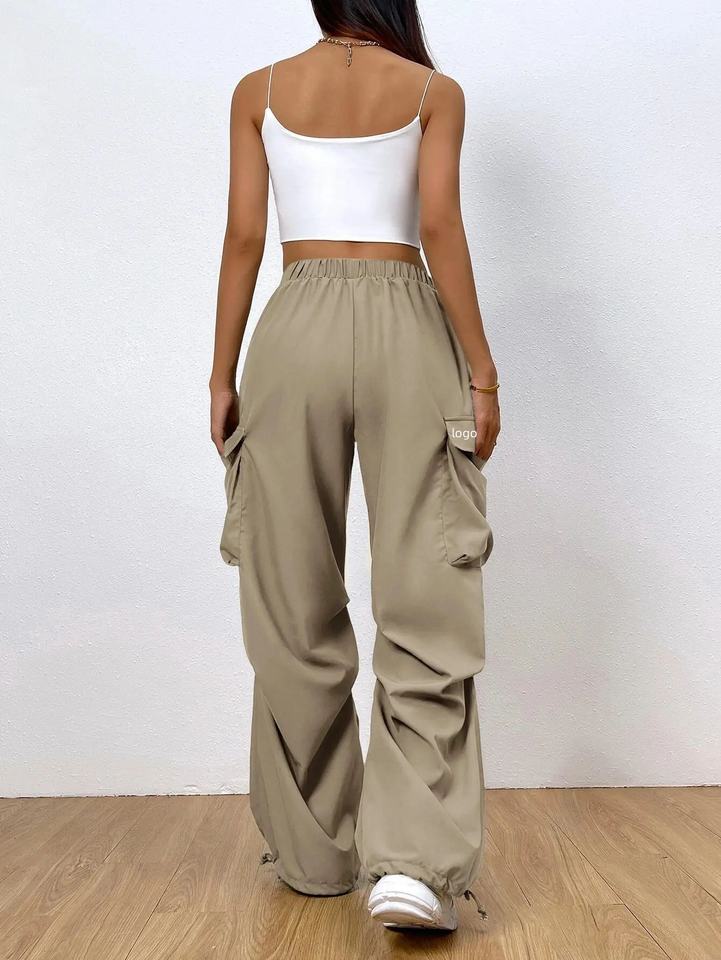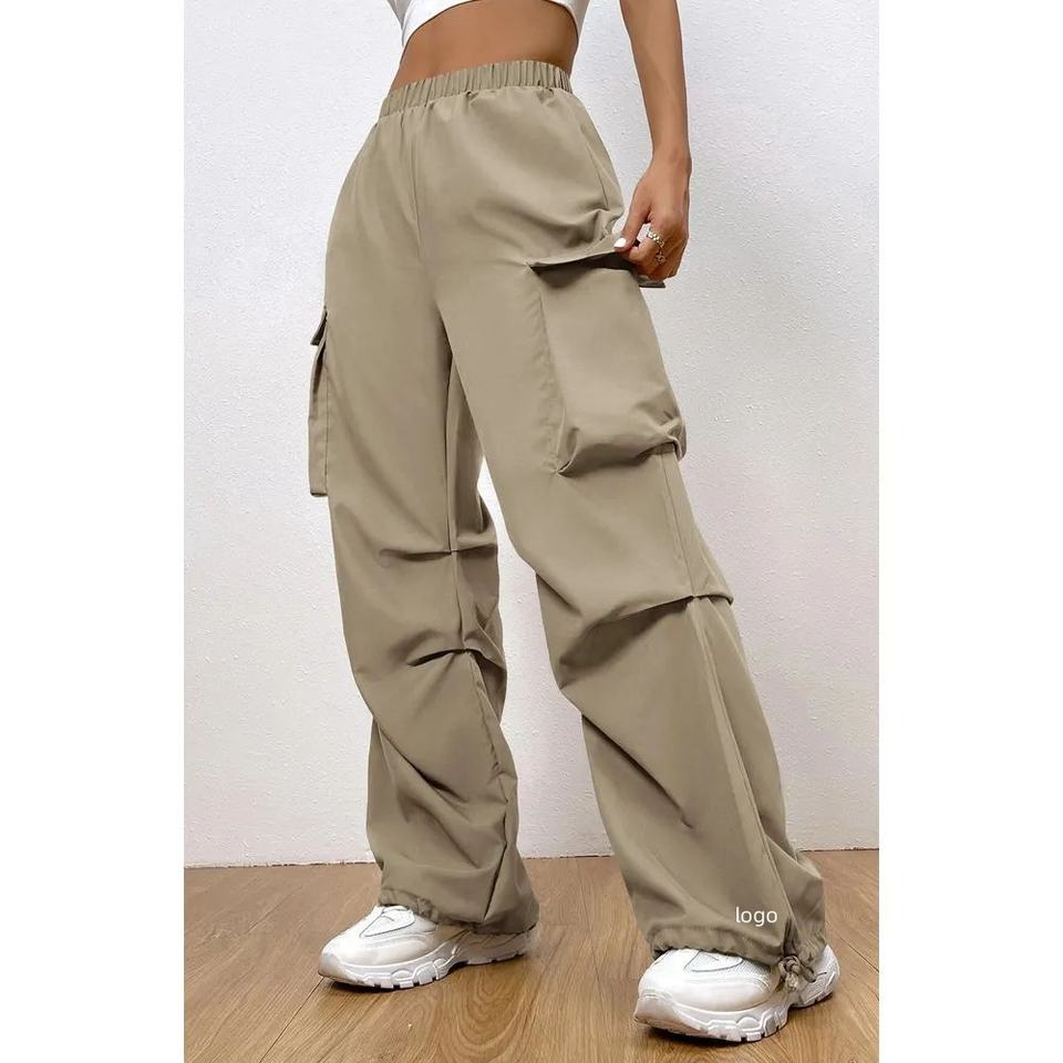 Pantalon de jogging gris ample pour femme, taille plus, avec logo personnalisé, idéal pour le sport, la course, la gym, style cargo évasé