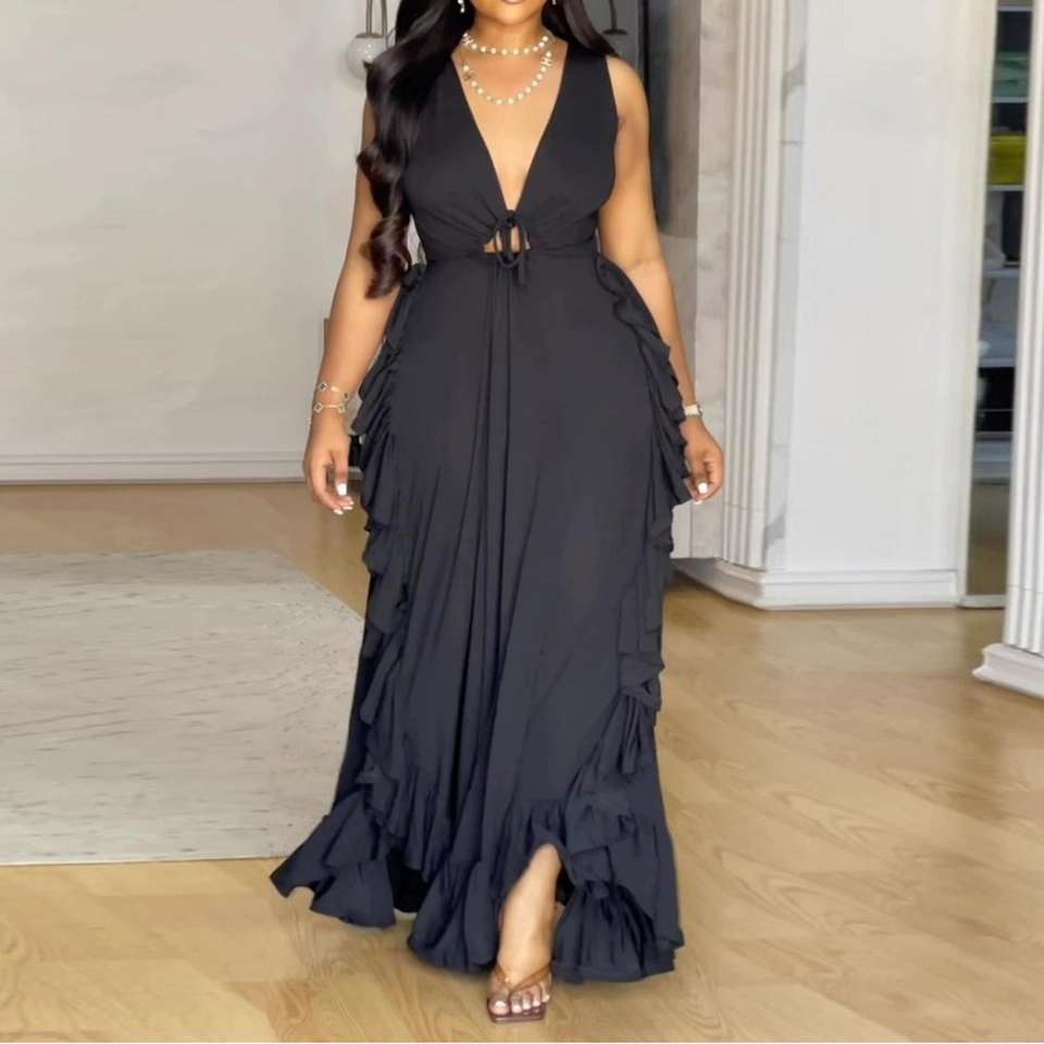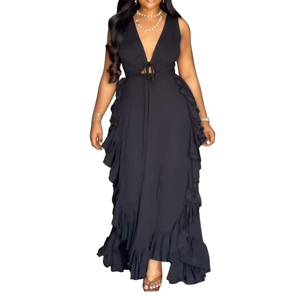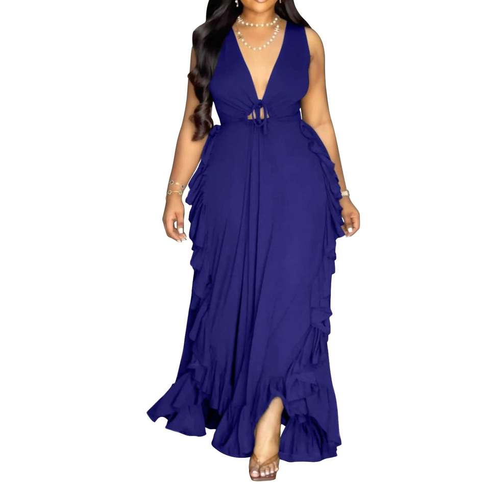 Robes d'été asymétriques à volants taille haute dos nu en V profond grande taille pour femmes – Tendance