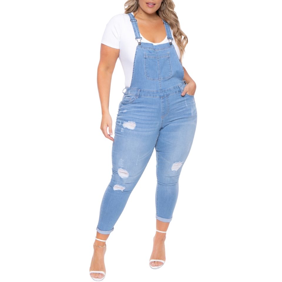 Salopette en jean grande taille, style taille haute, déchirée, extensible, confortable, mode décontractée pour femmes, antibactérienne, numérique