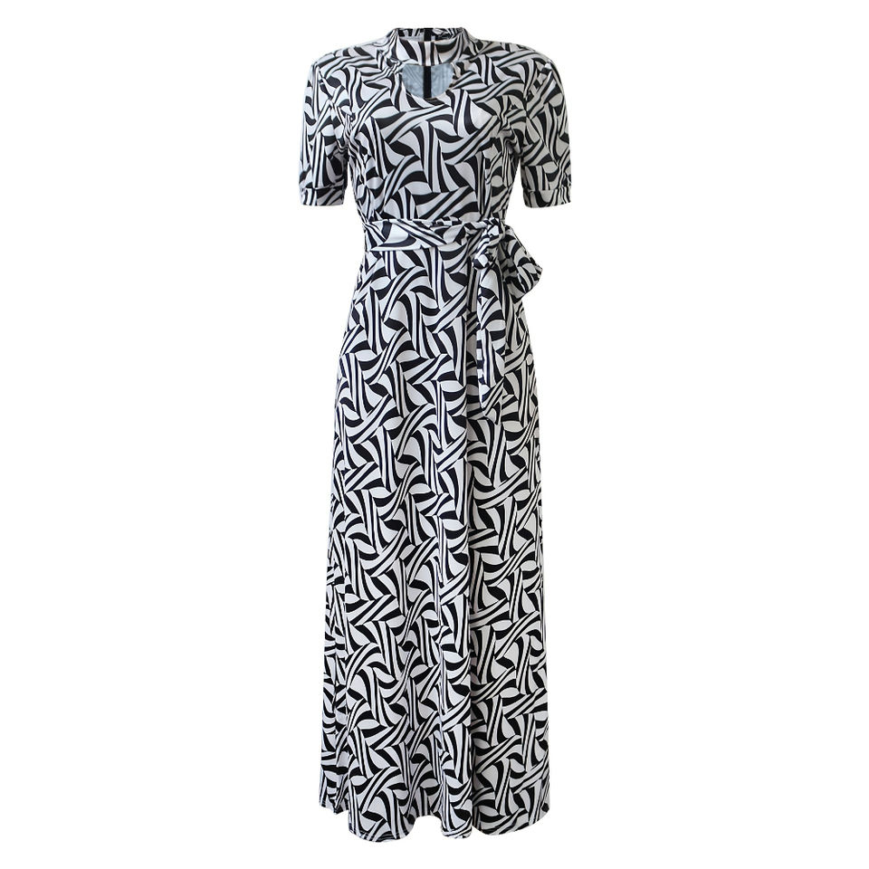 Robe Maxi à Manches Courtes Imprimée Fluide et Découpée à Col Montant pour Femme, Tenue Moulante Premium Elégante, Grande Taille