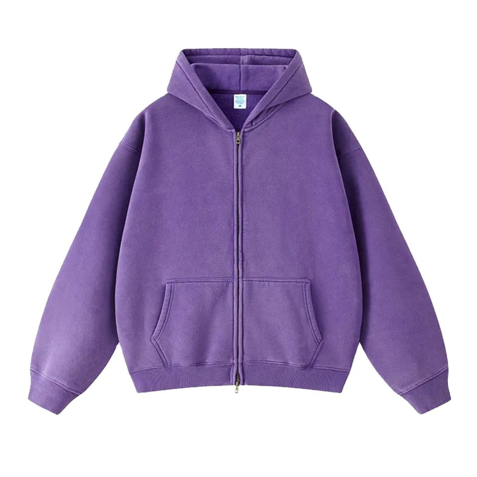 Sweat zippé de grande taille style frais Overfit Blank Streetwear Vintage Heavyweight Hommes Acid Wash Hoodie