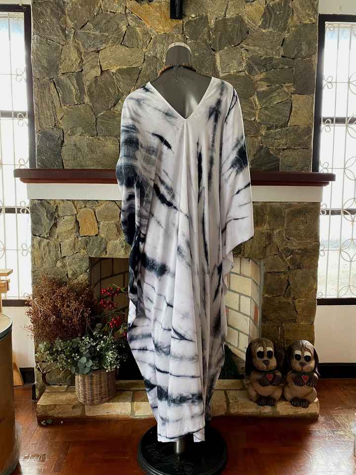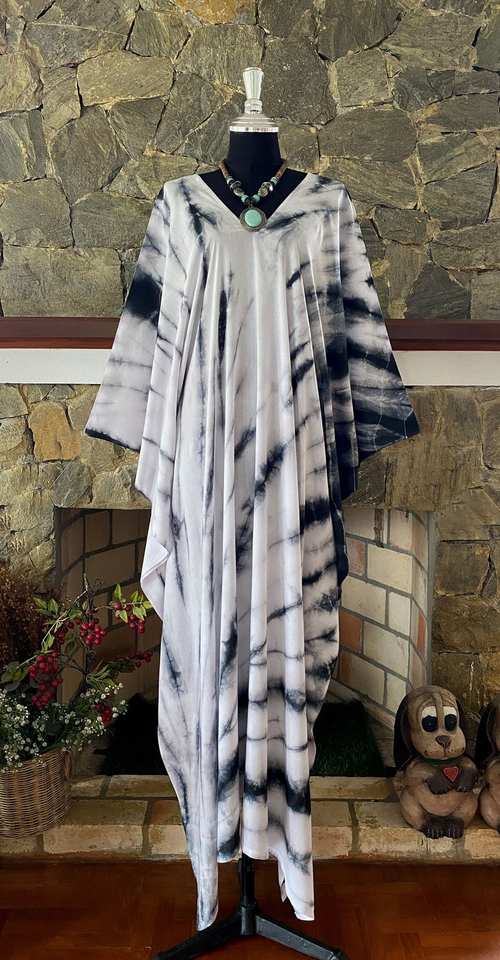 Robe caftan en rayonne teinte à la main de style shibori, taille plus, col en V, coupe décontractée, vêtements pour femmes