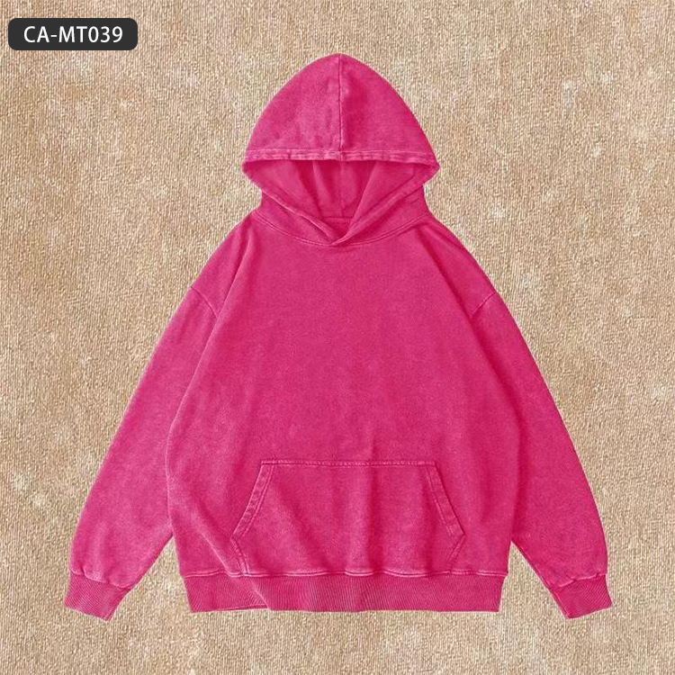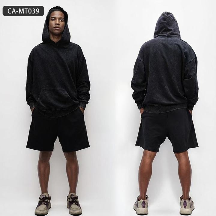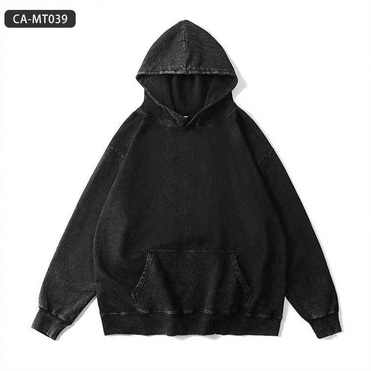 Sweat à capuche vintage délavé de grande taille 350g-Pull Streetwear américain avec épaule tombante et détails en détresse
