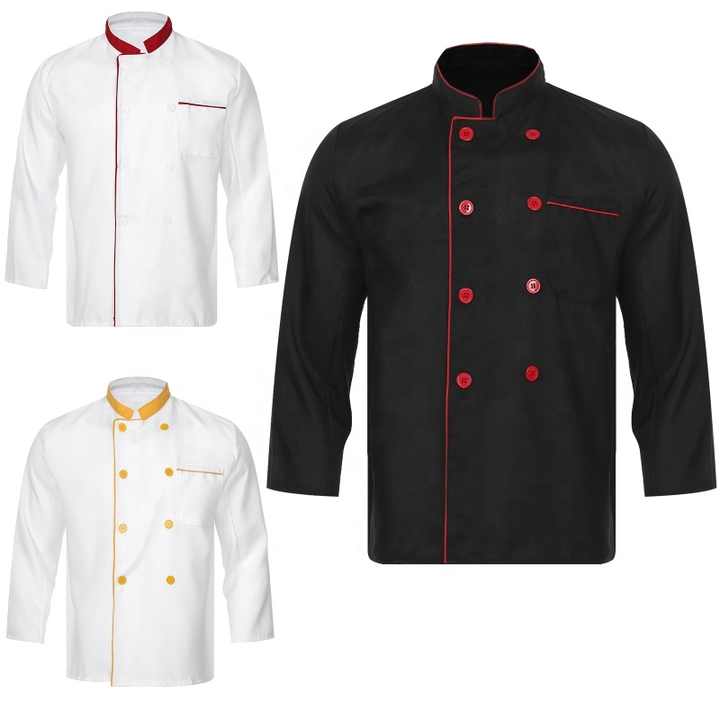 Uniformes de cuisine grande taille Veste de chef à manches longues pour hommes et femmes pour hôtel Vêtements de travail en sergé tissé pour la cuisson