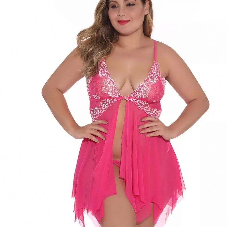Lingerie de grande taille avec fermeture frontale pour femme, vêtements de nuit sexy, robe de nuit, sous-vêtement de tentation en dentelle, chemise de nuit