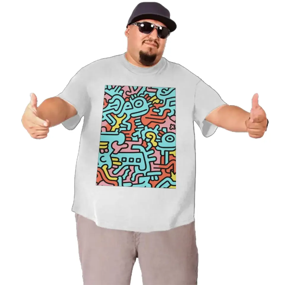 Image personnalisée grande taille T-shirt personnalisé pour homme Streetwear 100% coton Design uni avec techniques de sérigraphie d'impression contrastée