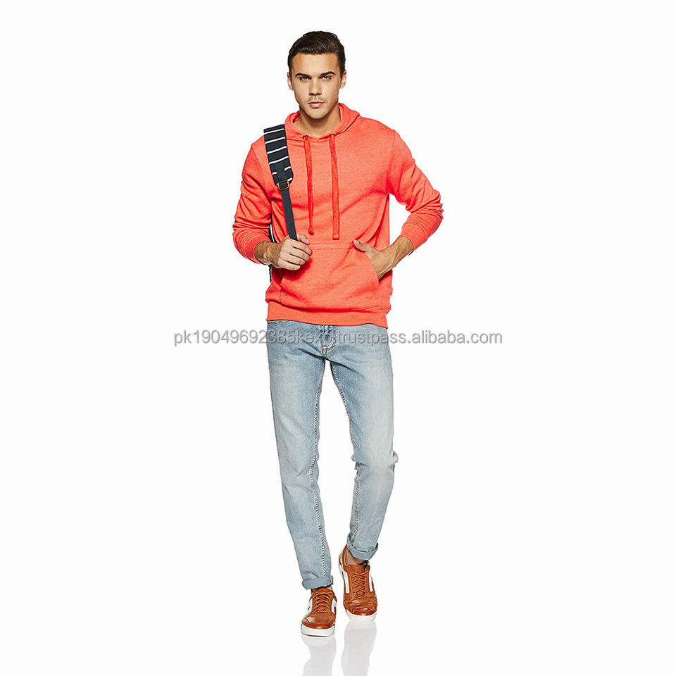 Plus Size Men's Orange Hoodies Pullover High Quality Cotton Plain Casual Wear Winter Sweatshirts for Sale