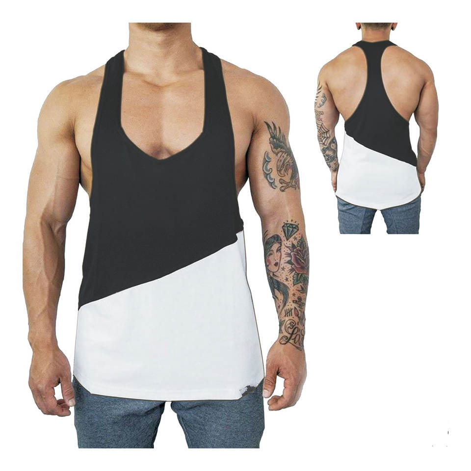 Débardeur en coton tricoté respirant grande taille pour hommes équipement de sport d'entraînement de fitness pour la course à pied en plein air panneau bicolore mode