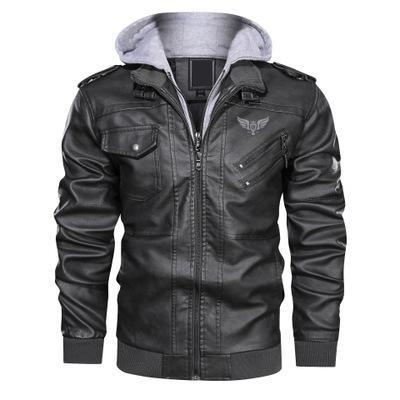 Plus Size Men's Winter Woolen Leather Bomber Jacket Single Breasted Casual Stand Collar Slim Fit Jacket Zipper Brown