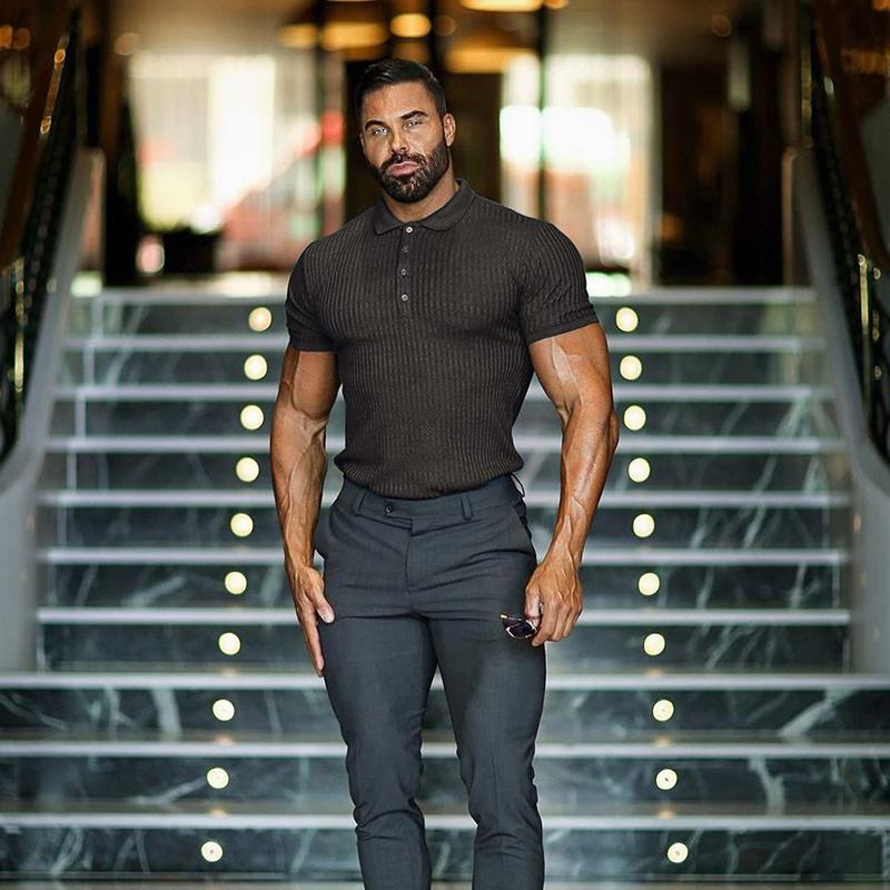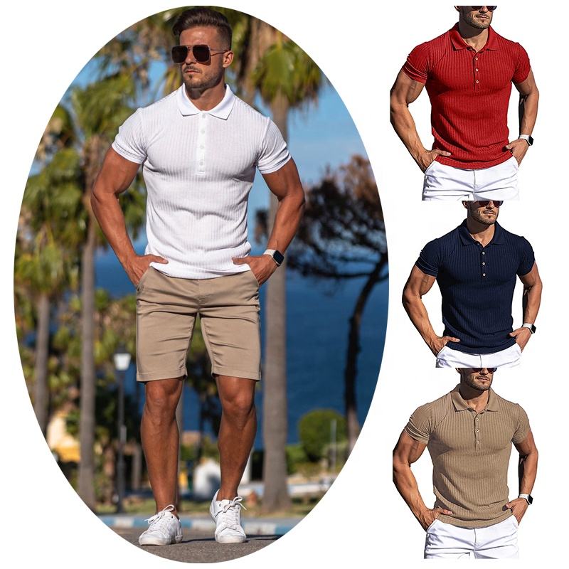 Chemises de golf anti-rides pour hommes de grande taille T-shirts musculaires en tricot côtelé Chemisier à col Vêtements d'entraînement Chemise Homme Polo Shirt