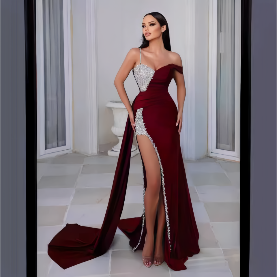 Robe de bal multicolores grande taille | Robe de soirée en or lourd avec jupe longue et design sexy