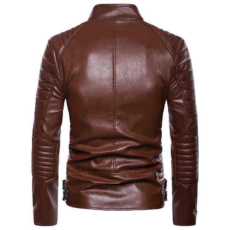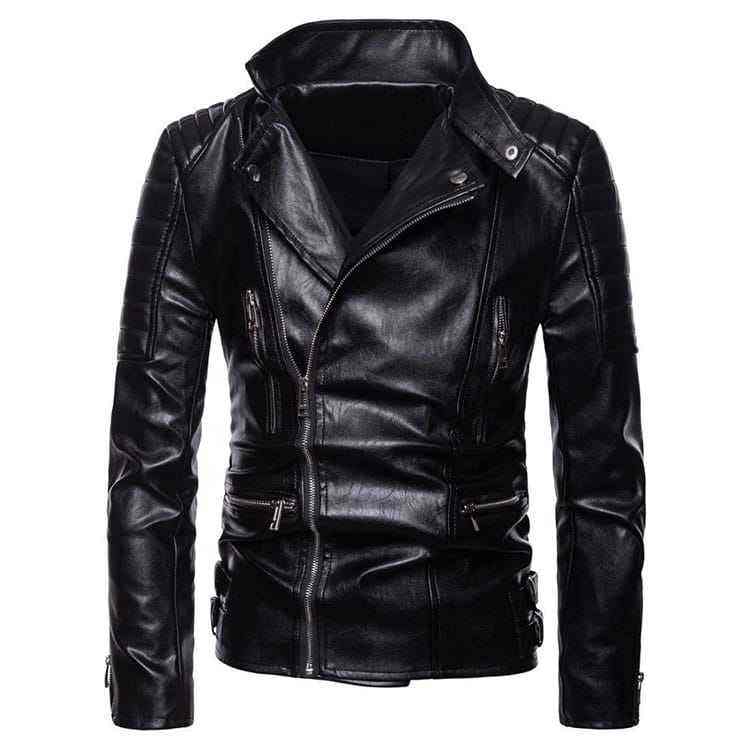 Blouson de moto en similicuir PU grande taille pour homme, col montant, fermeture éclair, style motard