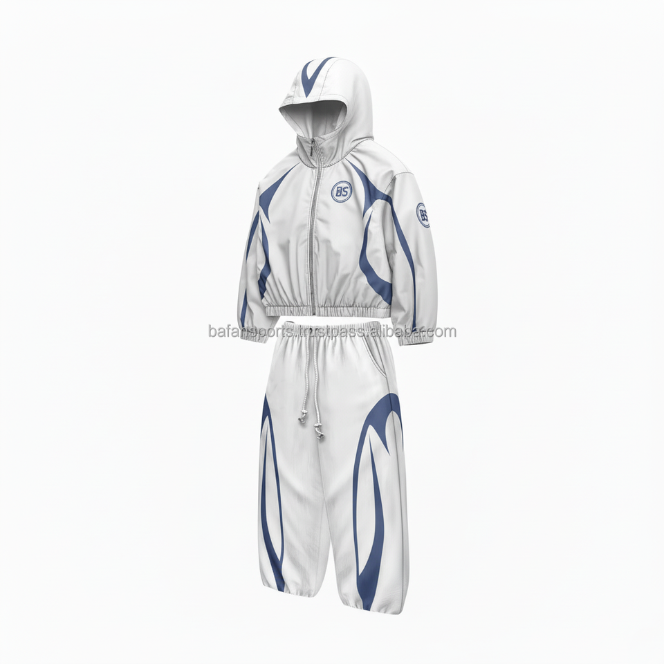 Ensemble de coupe-vent de qualité supérieure de grande taille 230GSM Ensemble de coupe-vent à panneaux contrastés en tissu polyester haute densité blanc bleu avec logo personnalisé