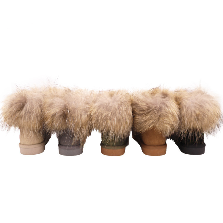 Bottes d'hiver à col en fourrure de raton laveur véritable, bottes d'hiver chaudes et décontractées pour femmes, bottes d'hiver à fourrure en cuir de mouton véritable pour femmes
