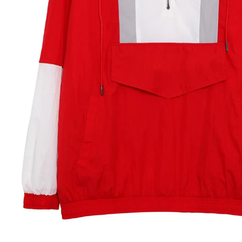 Veste coupe-vent à capuche mi-zippée grande taille rouge et blanc, respirante, doublée en maille, imperméable, brodée, style outdoor