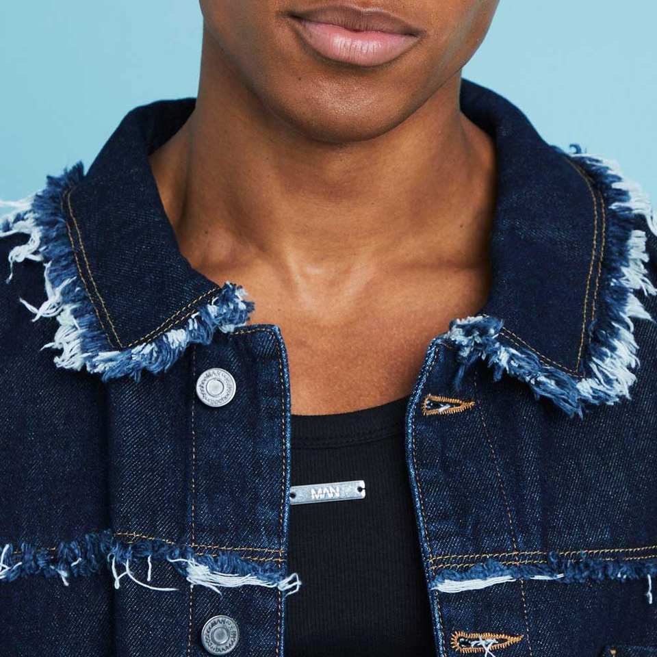 Veste en jean pour homme grande taille et taille normale, qualité supérieure, déchirée, style vintage, col montant en fausse fourrure, logo sur le devant, 100% coton