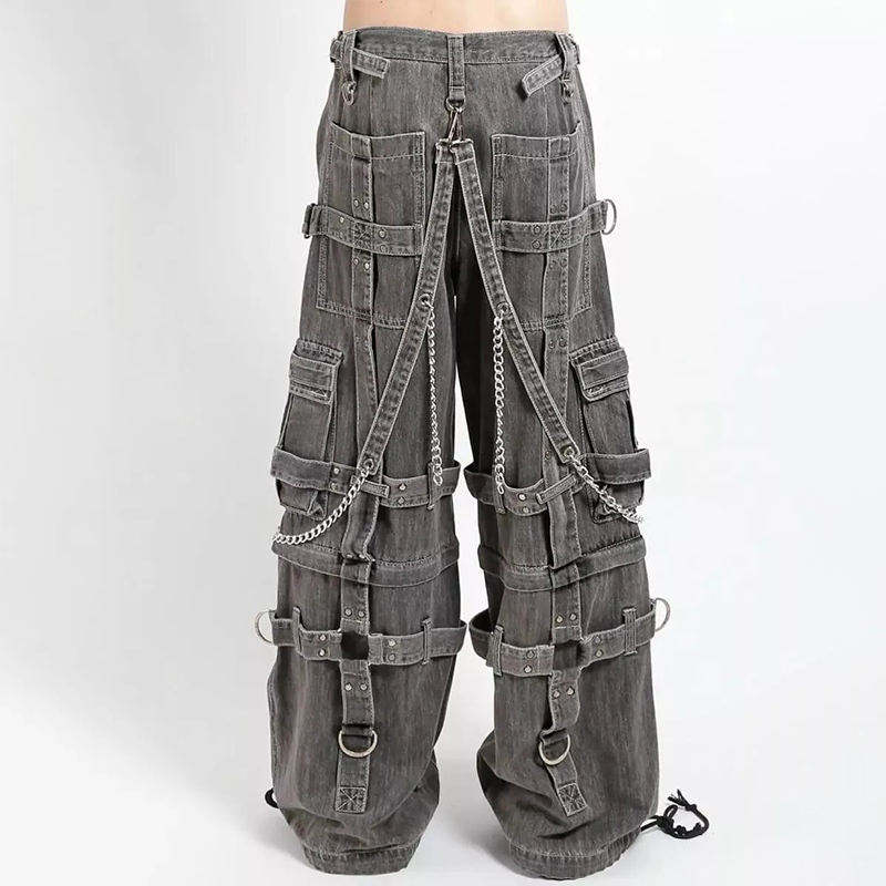 Jeans extensible grande taille, logo personnalisé, jeans baggy gris délavé de haute qualité pour hommes