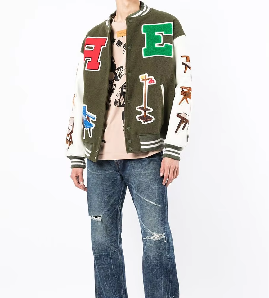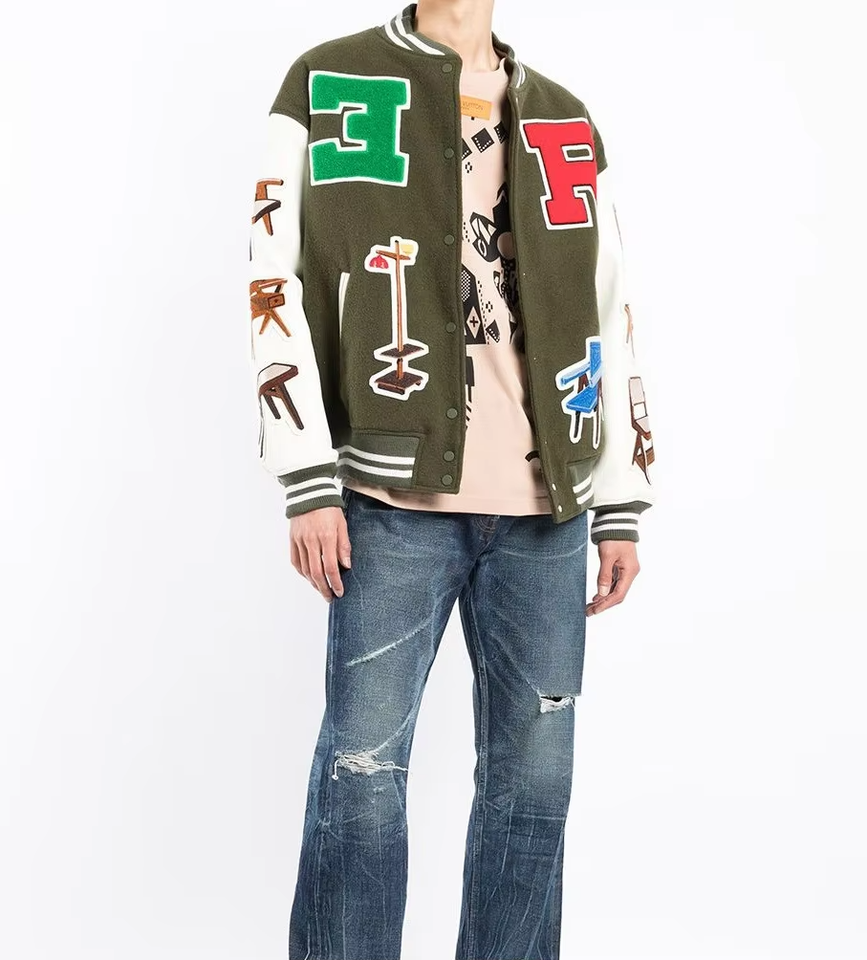 Blouson universitaire homme grande taille en 100% laine, col montant, logo frontal, style baseball, respirant, vente en gros, OEM, personnalisé, hiver, en promotion