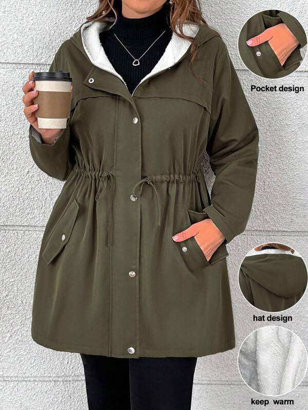 Ruffle Hooded Zipper Covered button