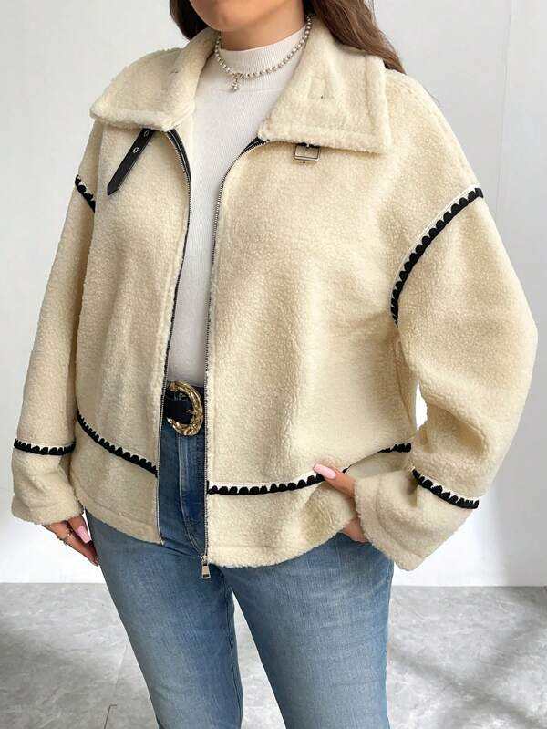 Plus Size Women 2024 Autumn New Chic Fashion Large Pockets Adorn Jacket Coat Vintage Long Sleeve Female Outerwear Chic Overshirt