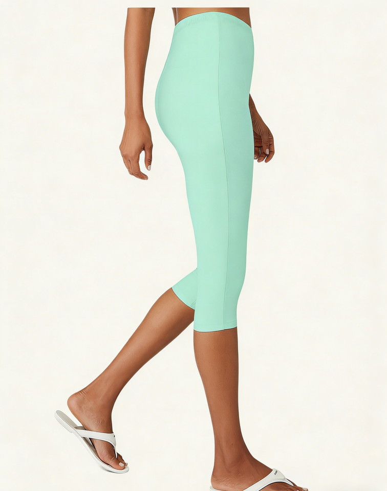 Lot de 2 leggings capri taille haute pour femmes grandes tailles, extensibles, couleur unie, longueur genou, en vert menthe et gris chiné