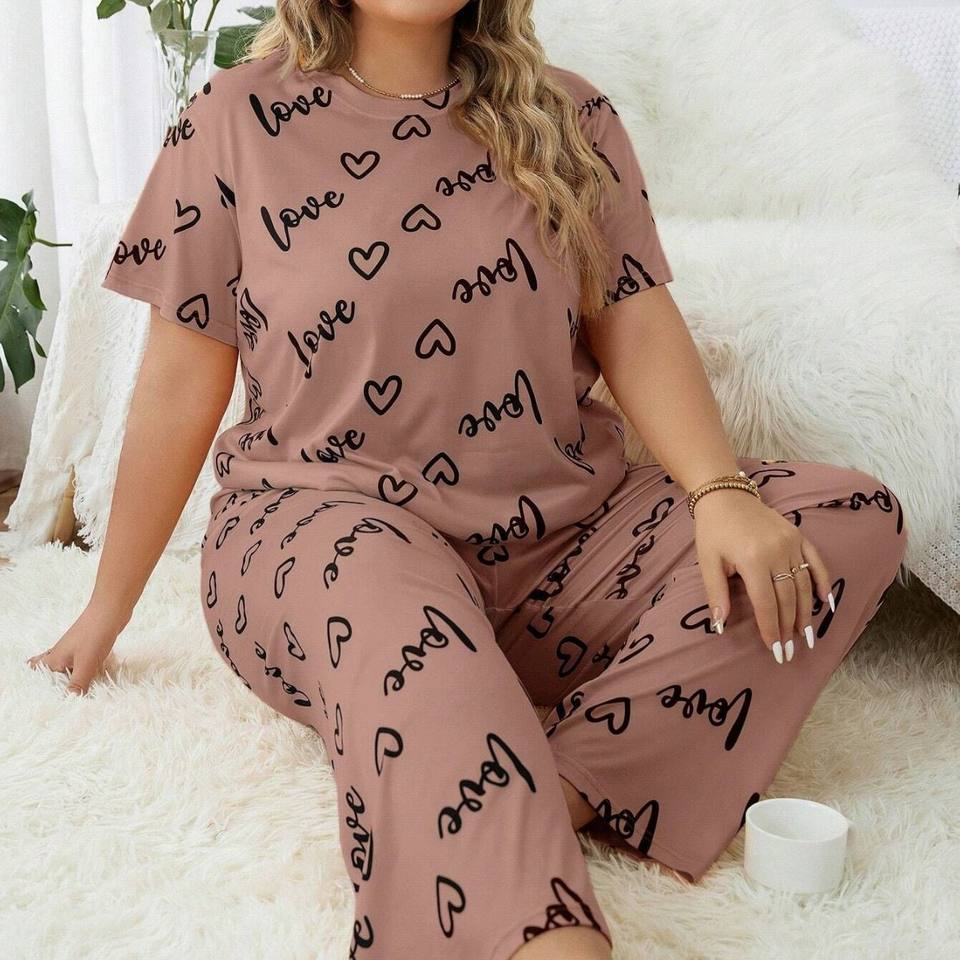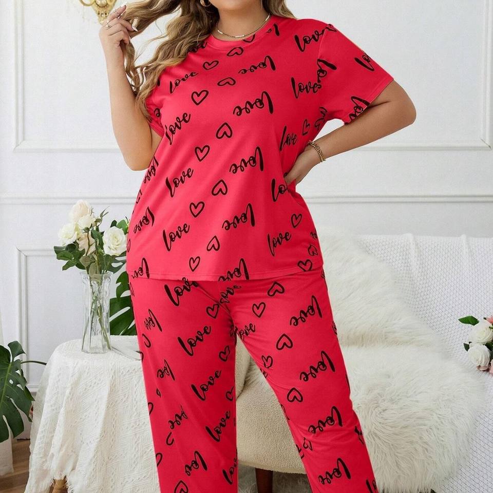 Vêtements de maison pour femmes grandes tailles, style européen et américain, pyjama à manches courtes, taille élastique avec motif d'amour