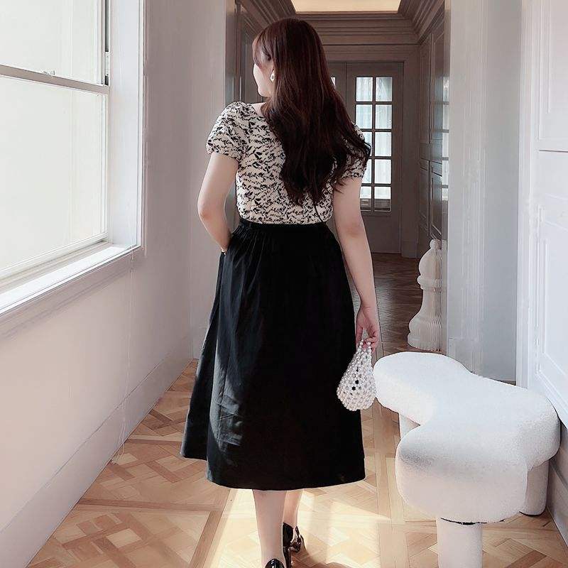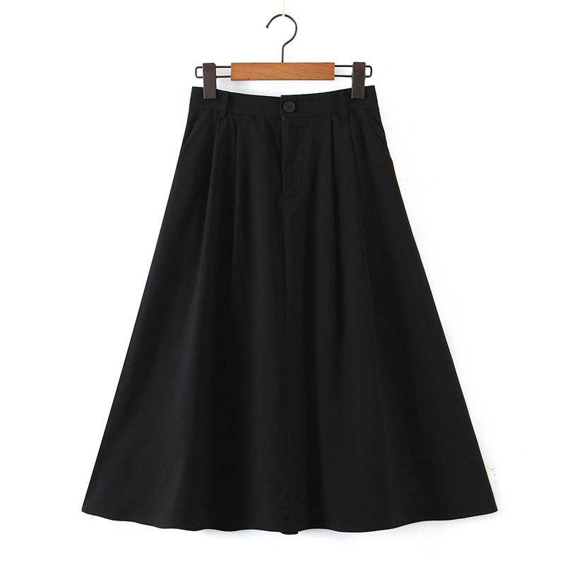 Jupe parapluie mi-longue en satin noir uni pour femmes grandes tailles, taille naturelle N8294