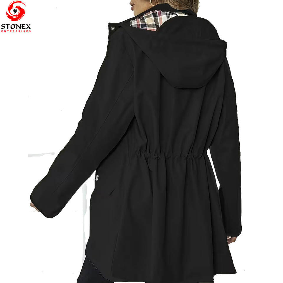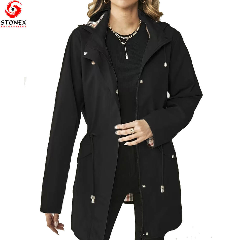 Plus Size Women's Waterproof Quick Dry Hooded Softshell Windbreaker Long Coat Zipper Breathable OEM Custom Colors Winter Wear