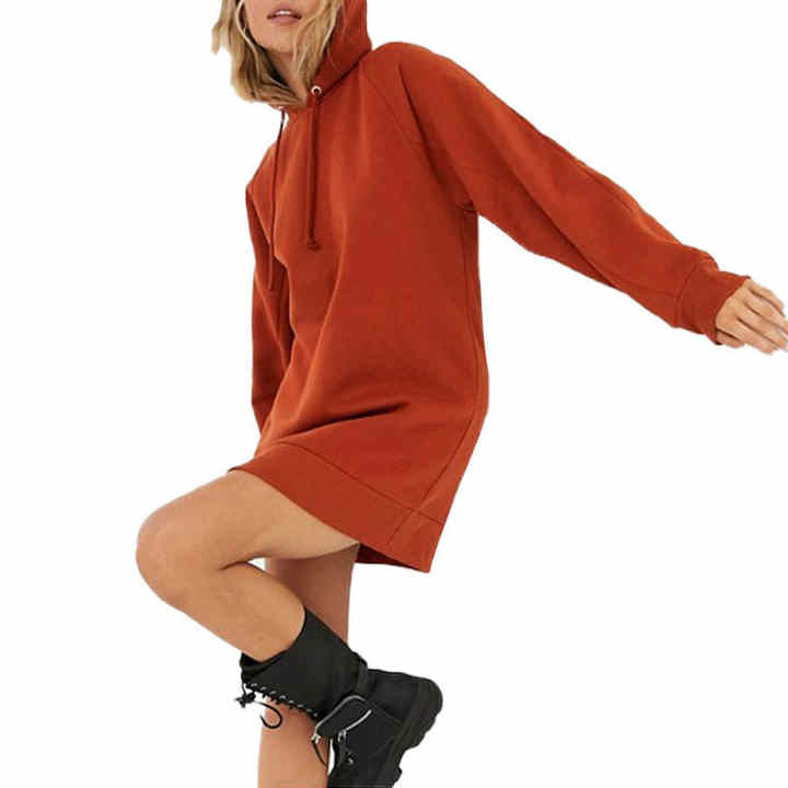 Robe décontractée à capuche avec cordon de serrage, grande taille, pour ourlet côtelé, manches longues, streetwear, broderie 3D, 100% coton