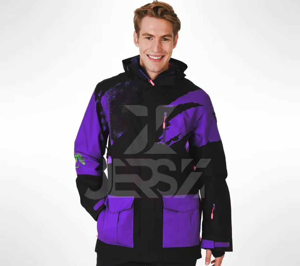 Men's Grey & Purple Waterproof Snowboard Jacket