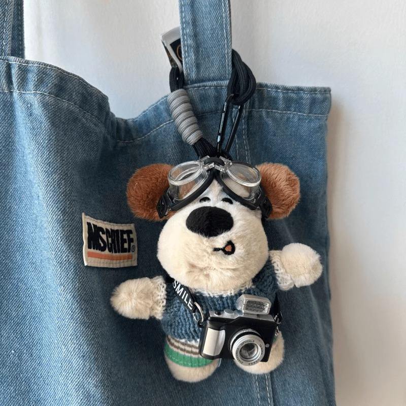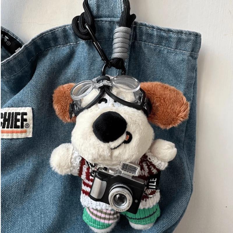 Porte-clés en peluche pour chien avec caméra, forme d'animal 3D, jouet doux pour sacs, sacs à dos et porte-clés