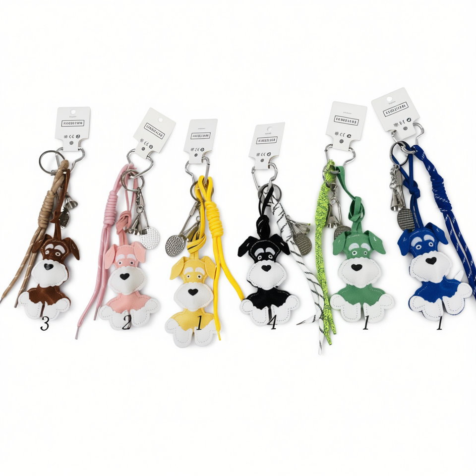 Porte-clés en peluche chien de dessin animé avec clochette, forme 3D, cadeau pour enfants et adultes
